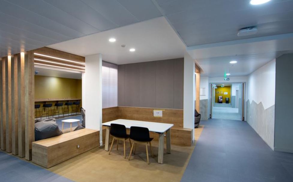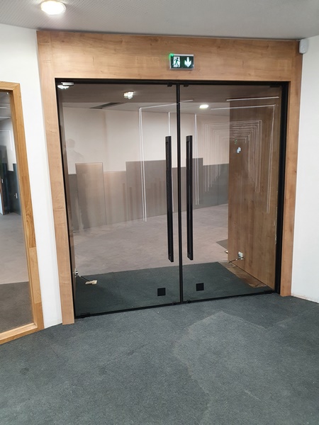 Hall accueil et distribution coupe feu Ecole portes lunax CF dans cadre bois