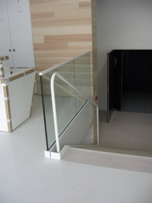 cloisonnement CoupeFeu verre en forme à l'étage +rampes
